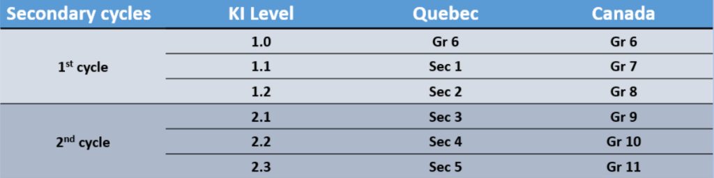 At Kativik Ilisarniliriniq, we have 6 grade levels in secondary; 3 levels in Cycle 1 and 3 levels in Cycle 2.