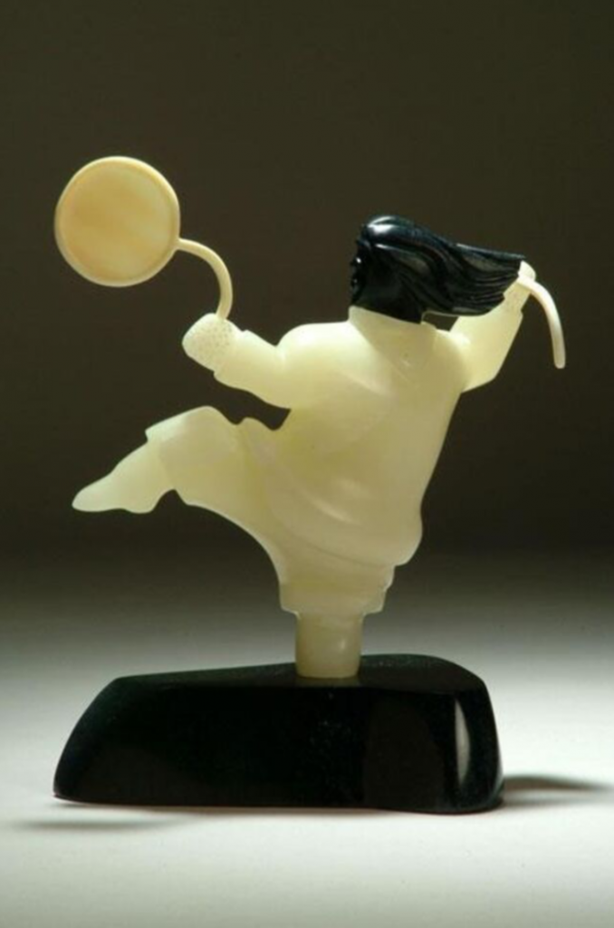 Traditionnellement, les tambours étaient faits de bois qui était trempé dans l’eau pour être plié avec les genoux, les mains et la mâchoire du fabricant. Le dessus du tambour était principalement constitué de peau de caribou prélevée sur des caribous spécifiques à certaines saisons pour obtenir une peau très mince. Elle était ensuite trempée dans l’eau pour enlever tous les poils, puis séchée. Il était très important que la peau du caribou soit intacte. Le bâton était fait de bois, de panache ou d’une partie de mammifères marins et enveloppé d’une peau animale. La corde autour du tambour était tressée par des femmes à l’aide de tendons. Ce type de tambour devait être démonté lorsque la danse du tambour était terminée. La peau de caribou était enlevée, enroulée et bien rangée jusqu’à la prochaine danse du tambour.