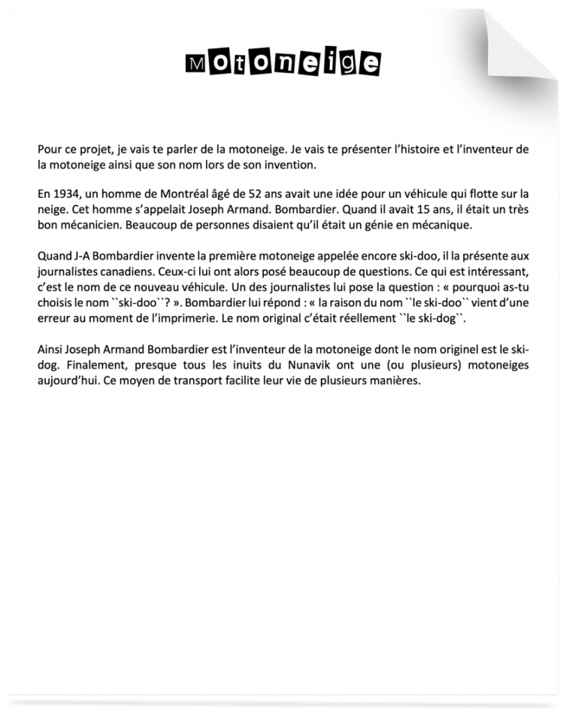 Cette production écrite a été faite avec une banque de mot et un canevas.