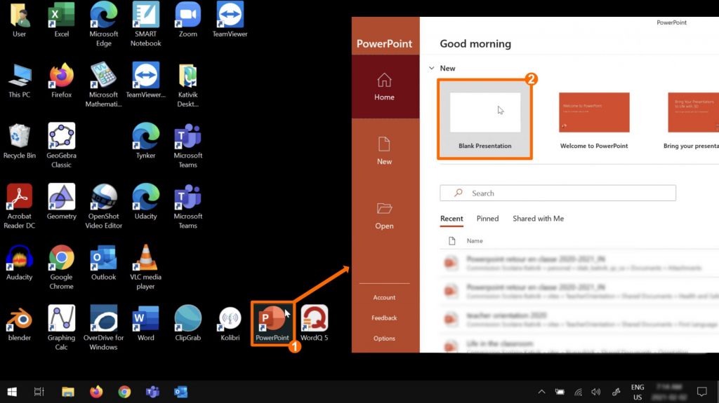 - Sur le bureau, double cliquez sur l’icône de PowerPoint pour lancer l’application.