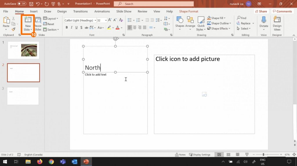 - Sous l’onglet Accueil, cliquez sur Nouvelle diapositive.