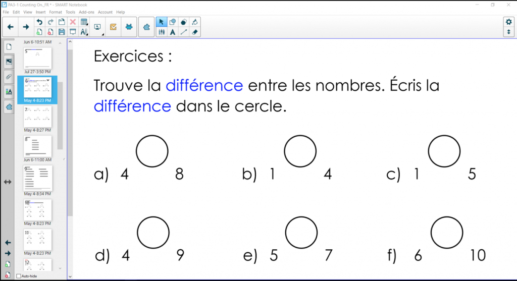 Faire le lien avec les diapos numériques correspondantes; choisir, ajouter, changer ou modifier pour appuyer l’enseignement et les exercices.