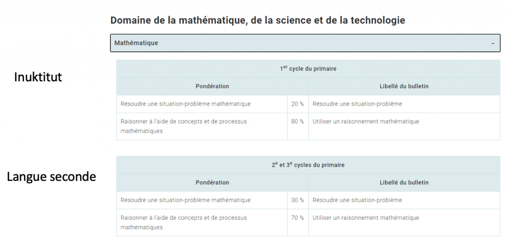 Le tableau suivant comprend les segments obligatoires minimums à évaluer pour l’année scolaire 2022-2023. Pour les deux premières étapes, le sens des nombres, les régularités et l’algèbre sont obligatoires, mais les autres branches demeureront ouvert sur le bulletin. Nous encourageons les enseignants à aborder les autres branches à chaque étape, en fonction des besoins des élèves. Consulter le document du PFEQ: La progression des apprentissages »Apprentissages à prioriser » pour les notions spécifiques.
