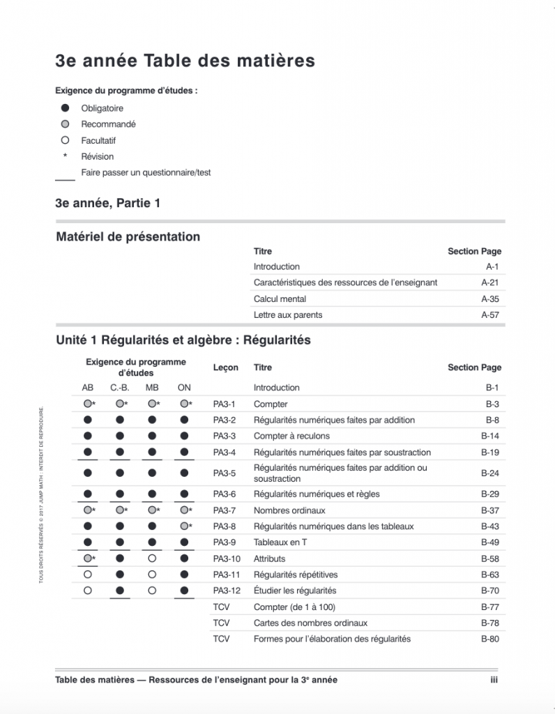 Les ressources de l’enseignant (TR) sont au cœur du programme JUMP Math. Se familiariser avec chacune de ces composantes permet notamment: