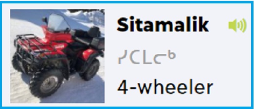 Glossaire offrant une liste de mots en inuktitut écrits en caractères latins et syllabiques avec leur traduction en anglais Cliquez sur l’icône vert près de chaque mot pour entendre sa prononciation.